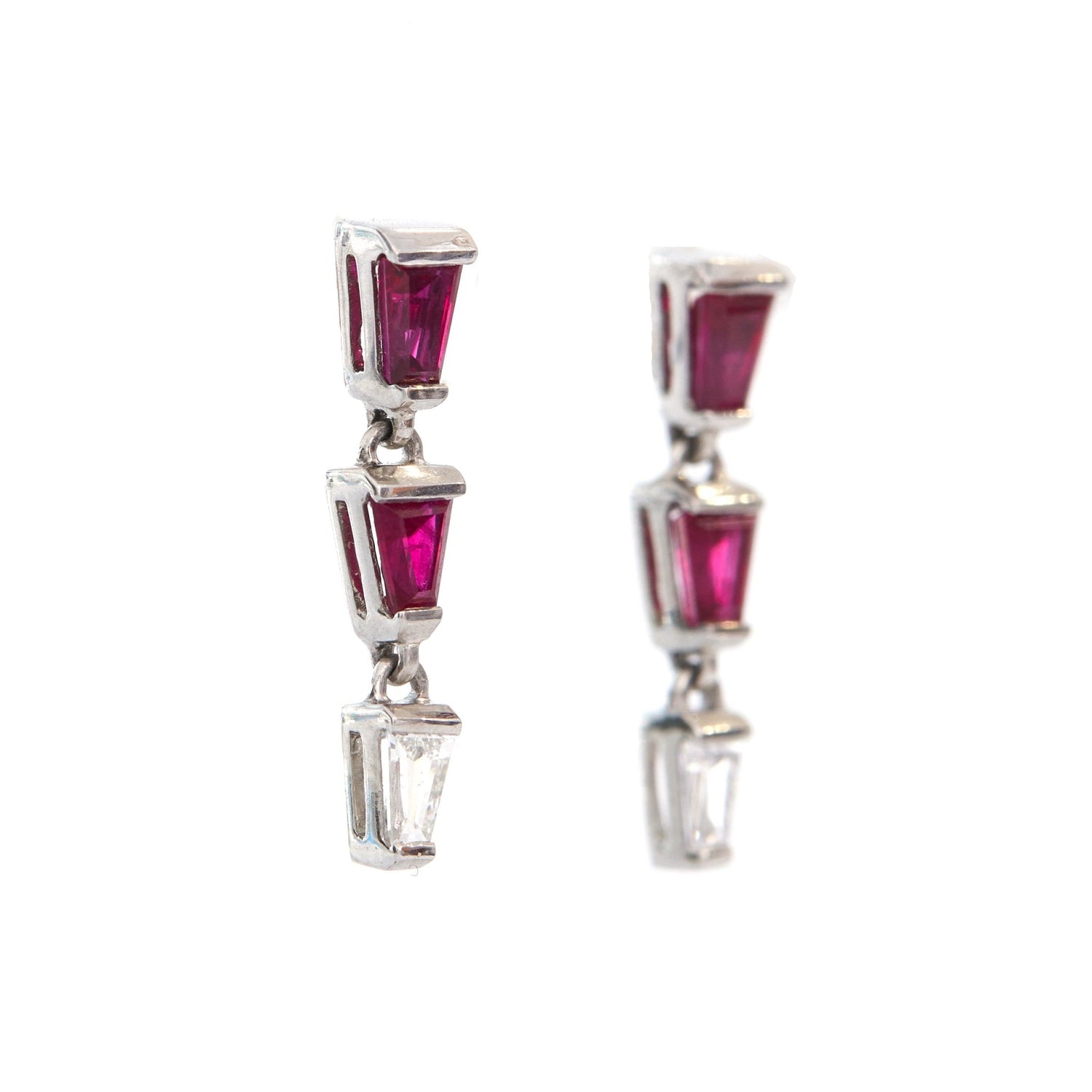 These little dangling earrings are perfect for everyday. The little movement between the stones adds to a little intrigue. The rubies selected are vivid red which stands out all on their own. It’s a little pop of color that really stands out.