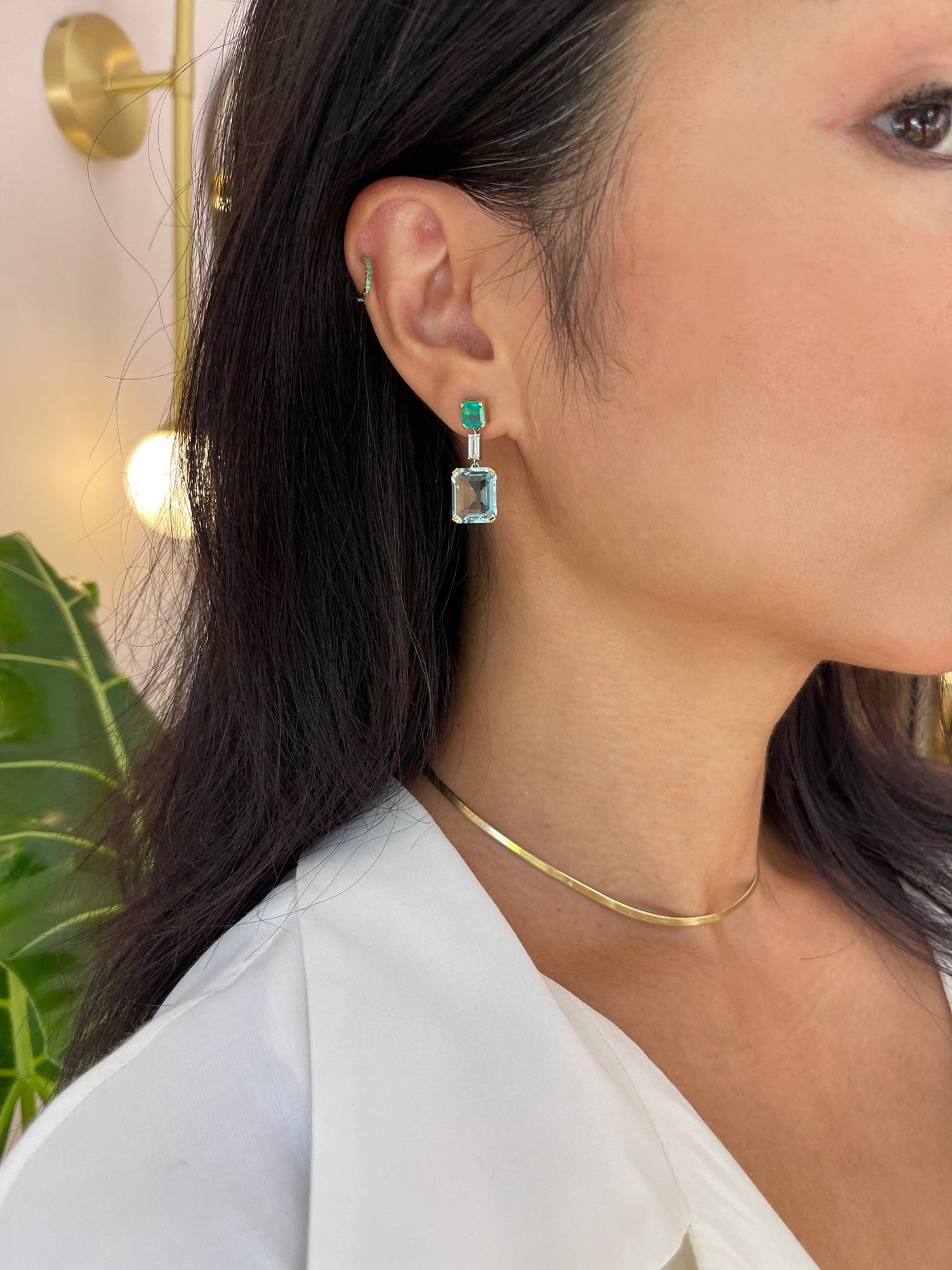 Emerald Aquamarine & Diamond Spring Bar Earrings