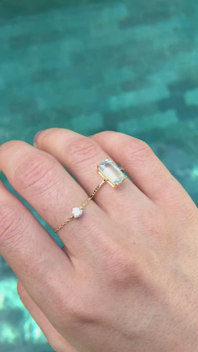The gorgeous color of this Aquamarine will mesmerize you. The simple and elegant design can compliment your everyday jeans or a cocktail dress. The proportion of this beautiful aquamarine against the 1mm micro pave Black Diamonds is striking.