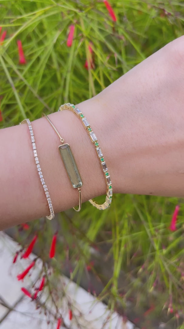 An exceptional bracelets made with a refreshing combination of aquamarines & emeralds. This handmade beauty exudes the freshness of spring and the spirit of vitality. Beautifully executed to perfection by our master goldsmith in 18k gold.