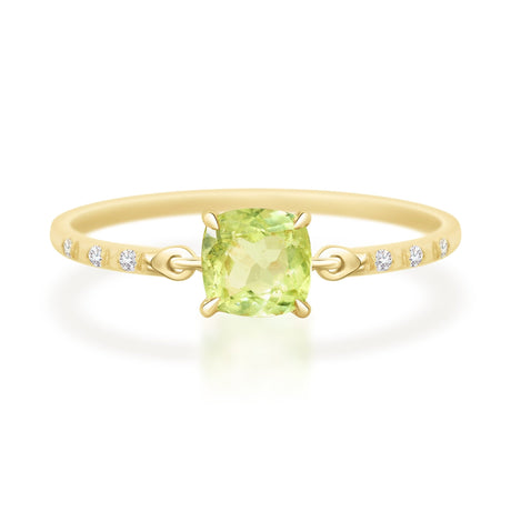Cushion Green Tourmaline Petite Circle Diamond Ring