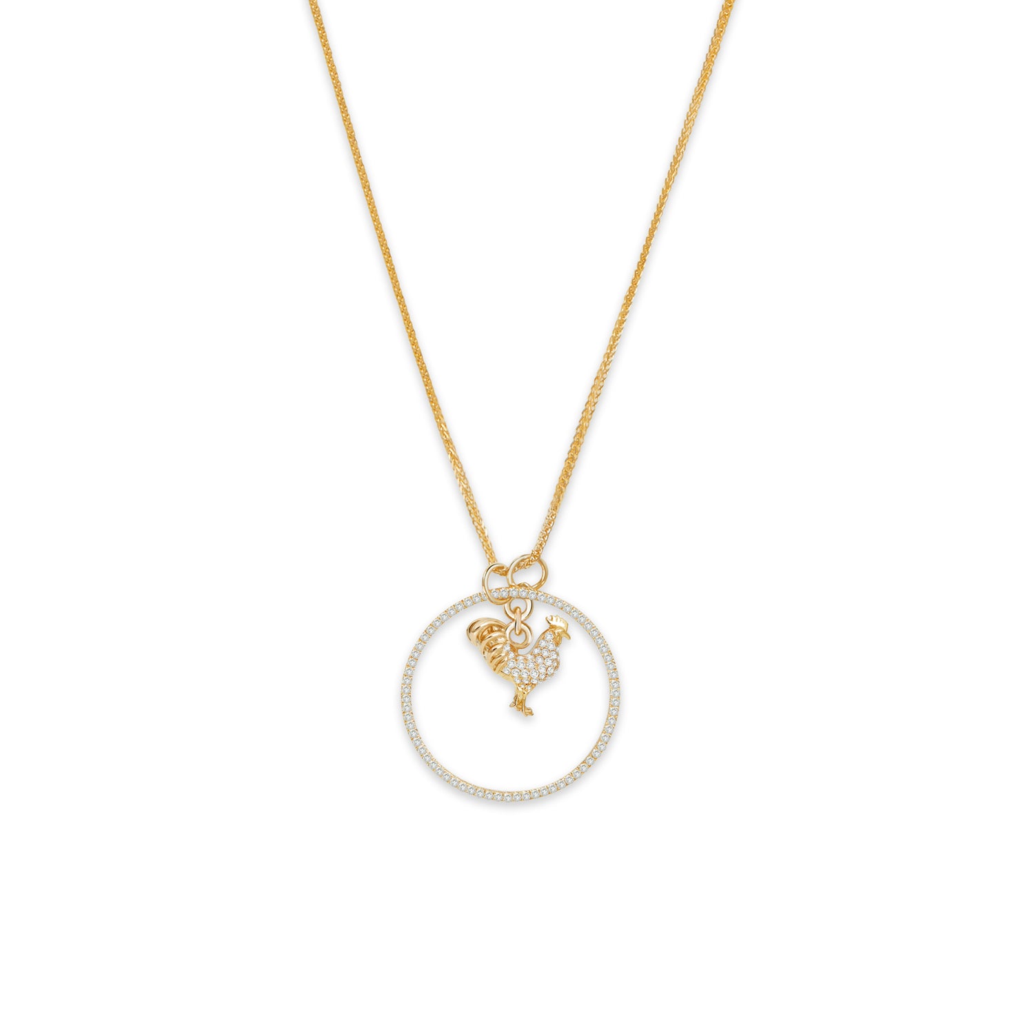 Each necklace comes with a circle of diamonds as a symbol of protection and continuity of life. The animal and circular diamond pendants anre entirely handmade in 18k gold and strung on an adjustable 20” necklace.