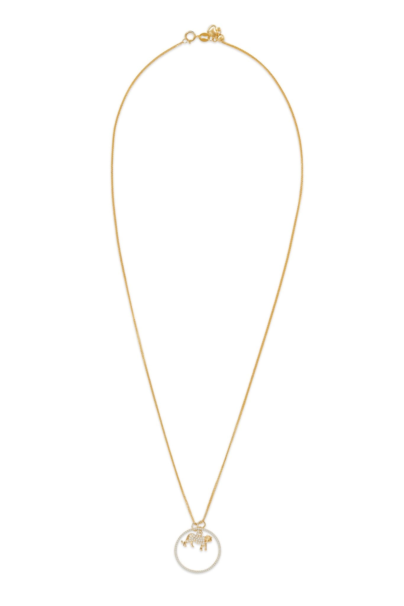 Each necklace comes with a circle of diamonds as a symbol of protection and continuity of life. The animal and circular diamond pendants anre entirely handmade in 18k gold and strung on an adjustable 20” necklace.