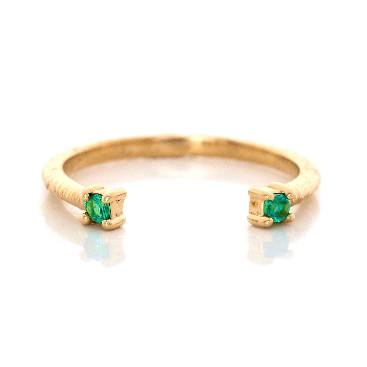 This is probably the chicest, most versatile ring we have. It’s a must have for your ring stack. The emerald open ring is perfect as a spacer for any solitaire. It nestles wonderfully between your main gemstone and an eternity band. Our master goldsmith has even hand textured the gold to give it an extra special finish.