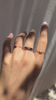 This modern and fun triplet features a shining white sapphire flanked by two tapered blue sapphire shoulders. These sapphire paired beautifully to create a radiant modern combination. It is a chic piece to wear with everything in your wardrobe. It stacks wonderfully with other rings from our collection or it can shine perfectly on its own.