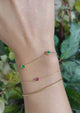 A chic bracelet composed of brilliant cut emerald set in gold little buttons. Three vivid green emeralds were selected for this special piece which looks good from any angle. We can think of nothing chicer than pops of green dotted across your weird stack. An essential to a modern woman’s jewelry collection.