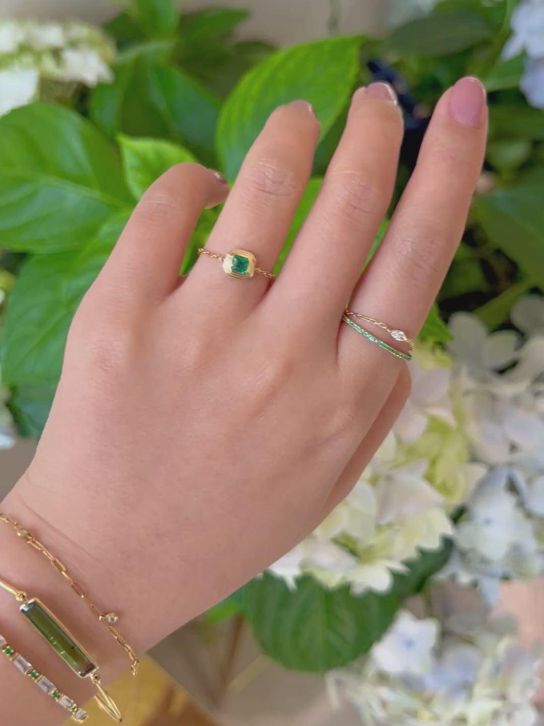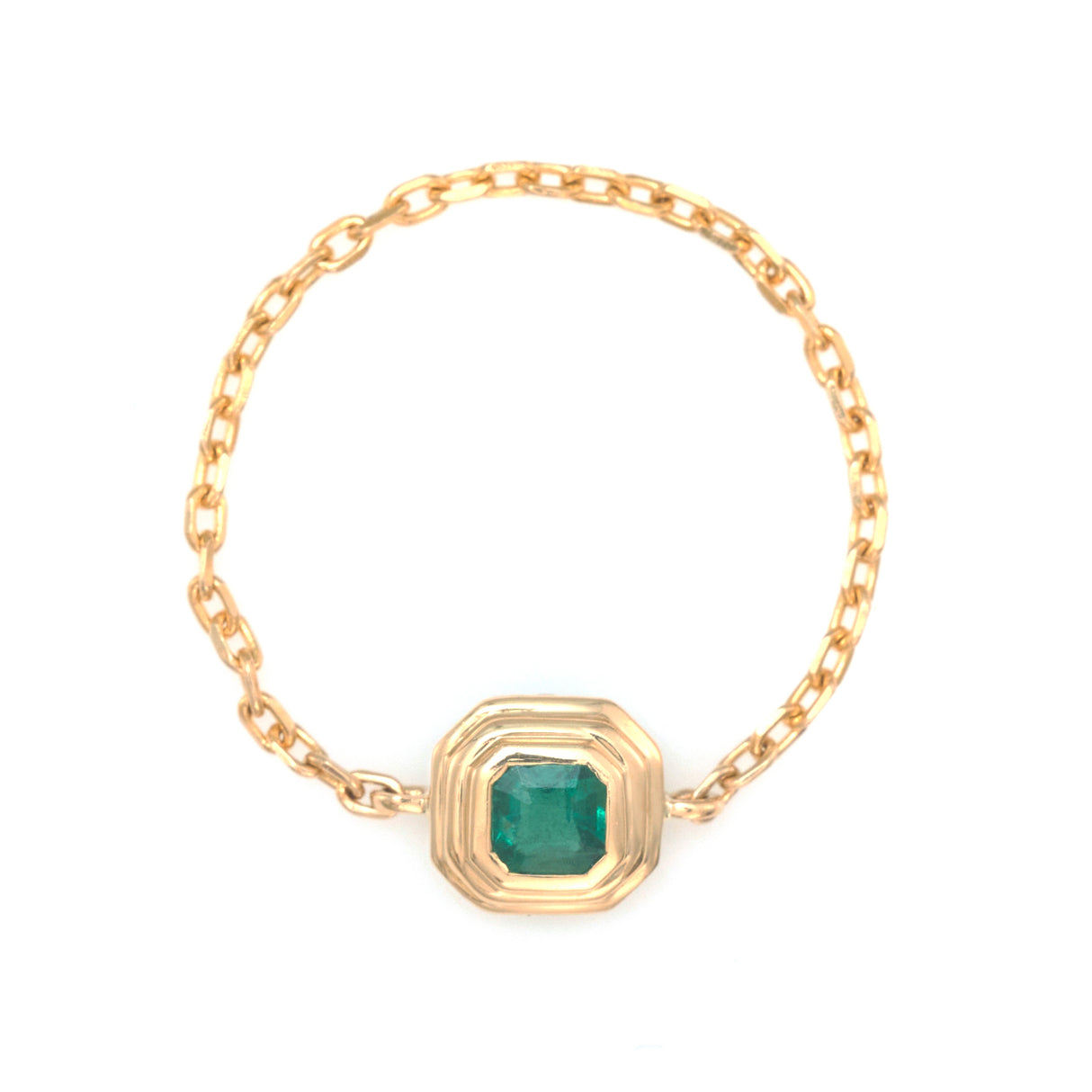 This exquisite vivid green emerald is sheathed in a graphic frame of gold. This chic and modern chain ring is a wonderful new additional to our collection. Its design has hints of a vintage past while exuding a cool contemporary feel. Wear her alone or stacked with one of our other treasures.