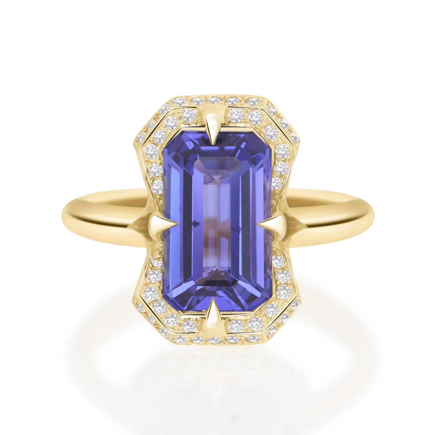 This is the ring dreams are made of. This magnificent Tanzanite gemstone is set inside an angular frame of diamonds. Our Aurora collection features exceptional gemstones and this gem is simply striking. It embodies ethereal beauty and radiates perfect modern elegance.