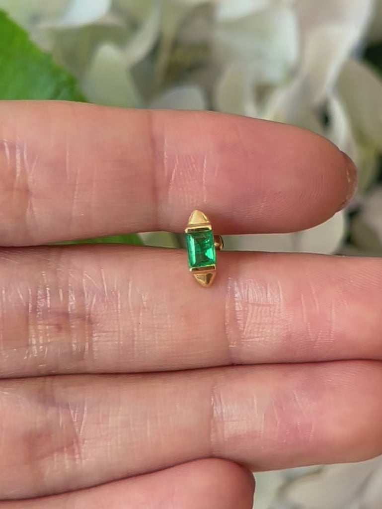 These earrings are a pop of color with a touch of edge. Perfect for updating your ear stack. Vivid green Gemfields emeralds are made cool with the additional of 18k gold spikes.
