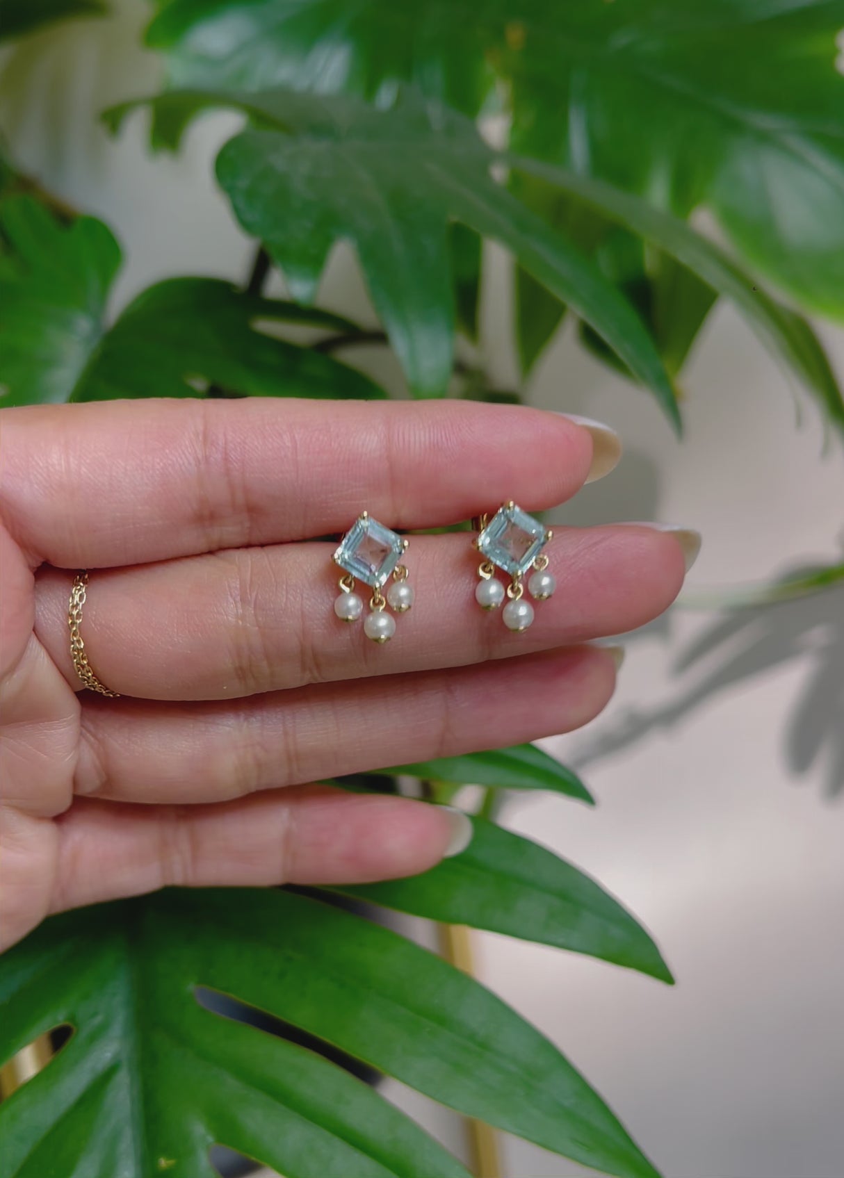 These charming and romantic earrings are made of hand-cut aquamarines from Madagascar and akoya pearls from Japan. The combination of these two exotic origins make for a unique story. The proportions of this pair is perfect for everyday. Wear them alone or stacked for added affect.