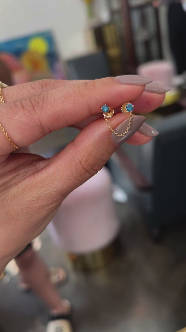 This blue Diamond Linked Earring is perfect for you. We love the dainty chain that swings between two dazzling blue diamond studs. It will add instant cool to your ear stack.