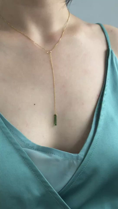 The green is definitely colour of any season and can be worn with anything. We are happy to present one of our favourites - slim and sexy Tourmaline Lariat Necklace.