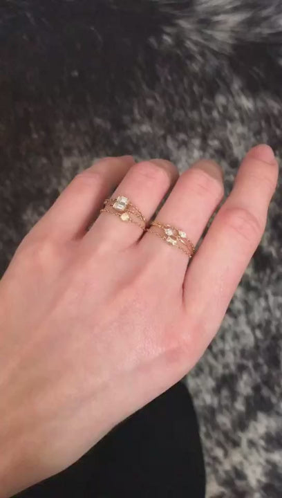 We love the strength of diamonds paired with something seemingly delicate. Our chain rings are actually incredibly strong. This delicate ring is extremely comfortable to wear. We don't even need to take them off for our workouts. Once you try one of our chain rings you will know exactly why these are our best sellers.