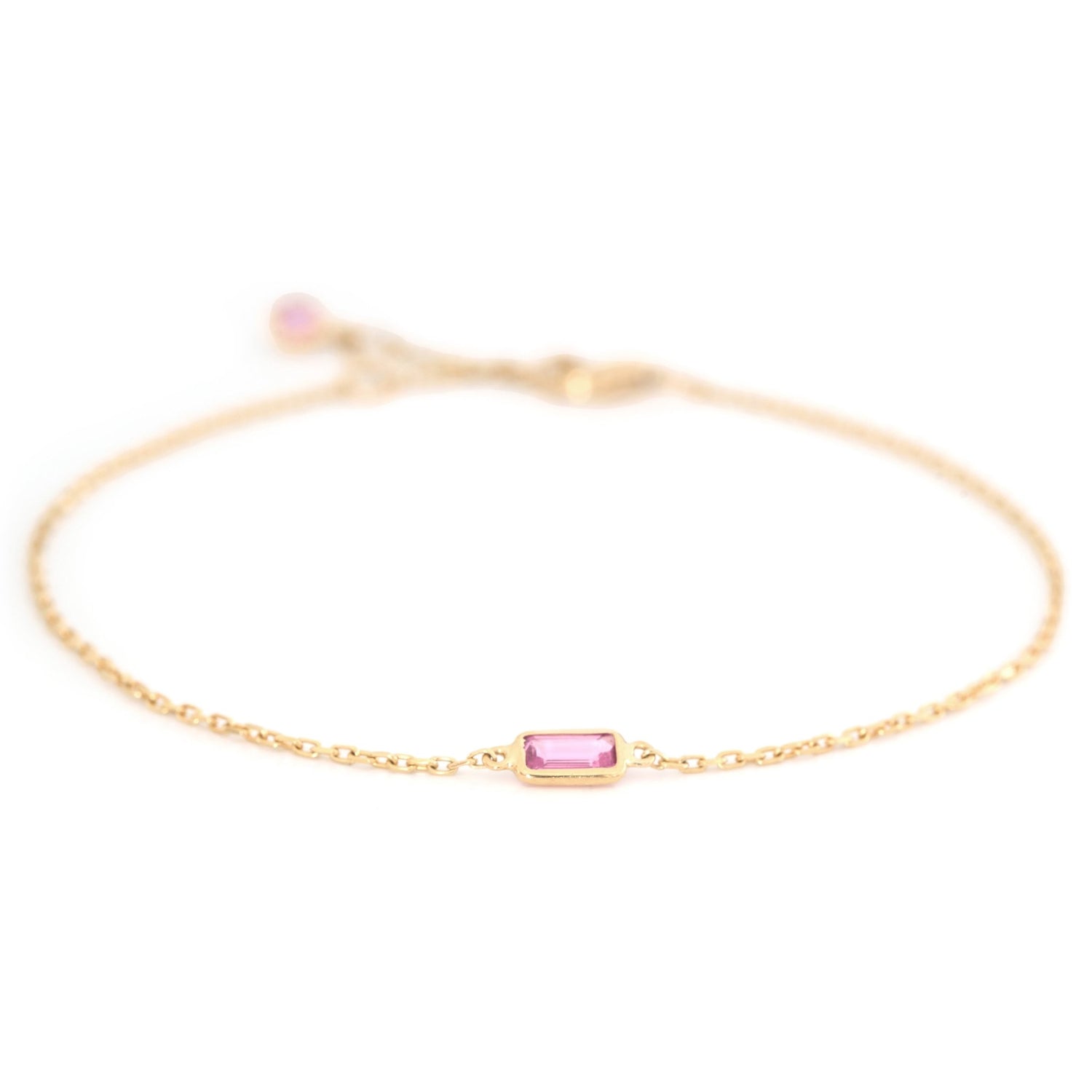 This pink Sapphire bracelet is feminine and modern. It's a perfect addition to any jewelry collection. A chic emerald cut pink sapphire stars as the central gem white a princes cut gem finished off the bracelet. These beautiful gemstones make this bracelet attractive from all angles.