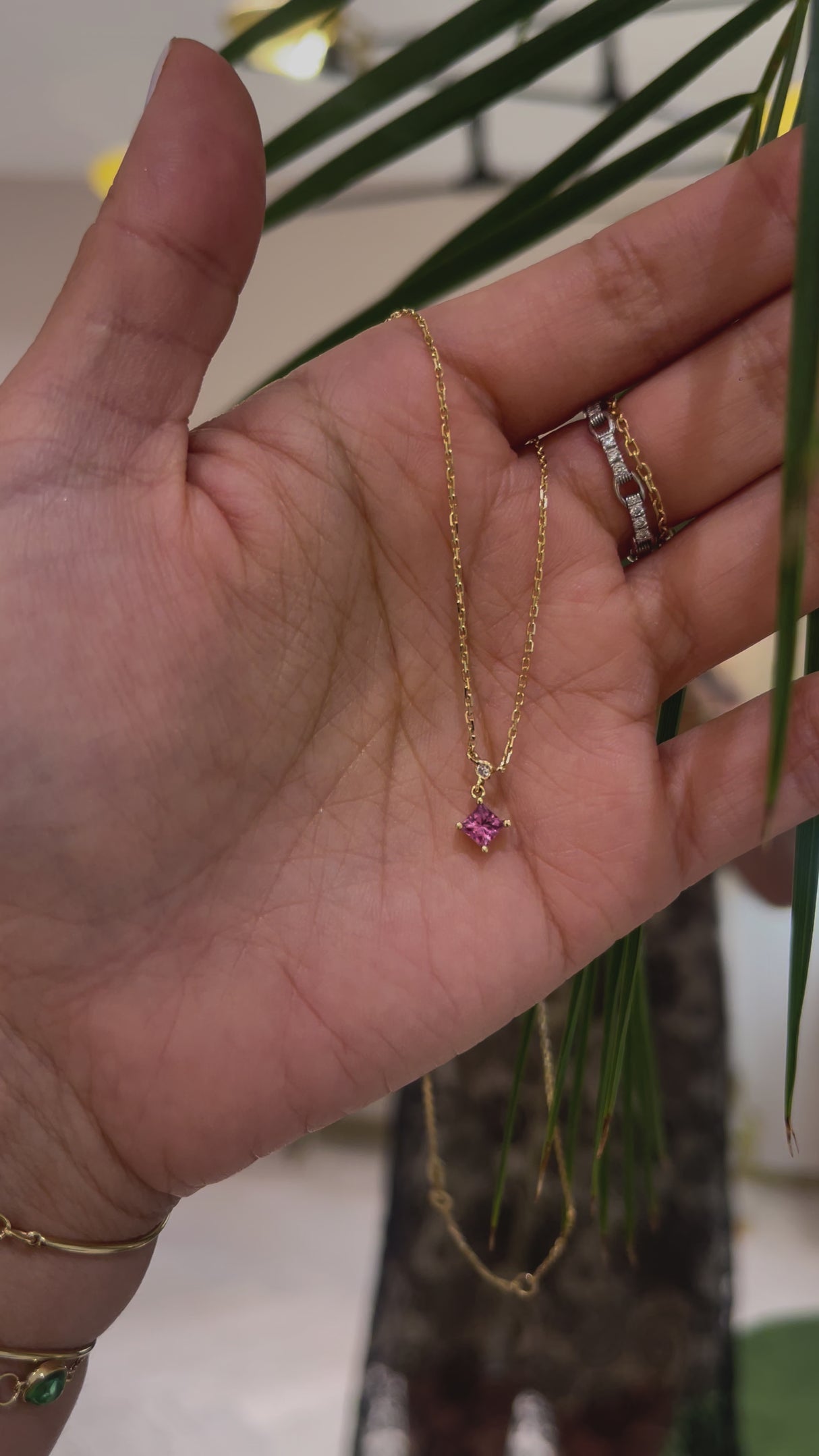 This dainty handmade pink Sapphire & Diamond necklace is a perfect daily essential. It's great for stacking and adds just the right amount of feminine energy. It measures 16 inches total with a 1 inch adjustable loop at 15 inches. This choker length is great as a foundational necklace to build your stack with.