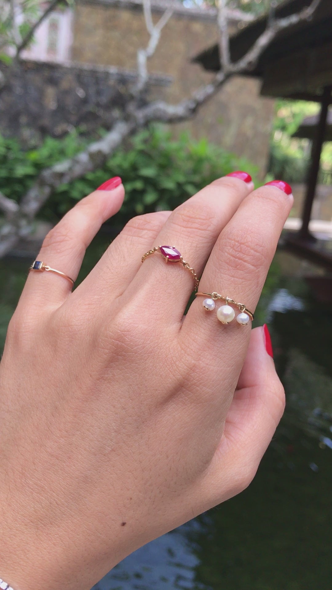 This marquise Ruby is a magnificent shade of red. It is the supremely rare pigeon blood red color. The classic marquise shape accents a delicate appearance. Handmade in 18k yellow gold, our signature chain rings look incredibly chic by itself or stacked with one of our other creations. You’ll be addicted to our mighty chain rings as soon as you put one on. This ring is part of our supreme collection which showcases magnificent gemstones in generous sizes.