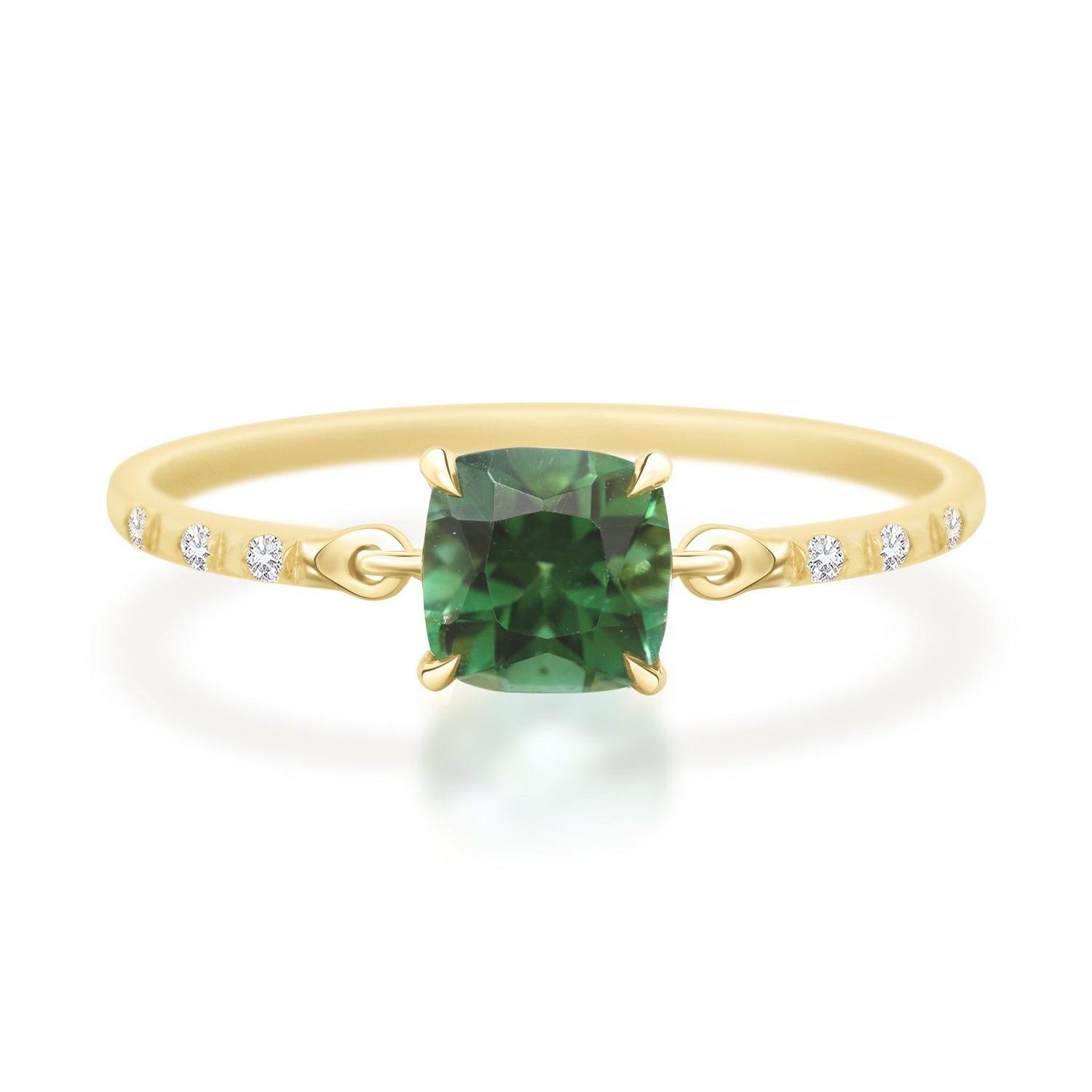 Cushion Green Tourmaline Petite Circle Diamond Ring